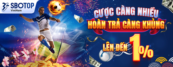 – Tất cả thành viên thuộc SBOTOP VIETNAM sẽ được tự động nhận hoàn trả hàng tuần dựa trên tổng số tiền cược có phát sinh thắng / thua tại tất cả các sản phẩm theo bảng chi tiết hoàn trả (không tính cược có tỉ lệ cược < 0.5, cược thắng/thua ½ tính nửa tiền cược).